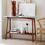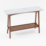 Стильная и нежная консоль из натурального мрамора с благородными ножками из дерева делают ее подходящей в любой интерьер. Консоль многофункциональная, можно использовать как подставку под ключи, зеркало в прихожей, а нижняя полка позволяет разместить книги и журналы в гостиной. Консоль станет прекрасным дополнением в спальне, гостиной за диваном или прихожей.