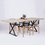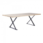 Современный обеденный стол в индустриальном стиле изготовлен из массива натурального дерева, дуба или ясеня, и икс-образными черными стальными ножками, покрытыми порошковой краской. Идеально впишется в интерьер в стиле Лофт или Скандинавский. Вневременная дизайнерская вещь для любой столовой или кухни.