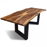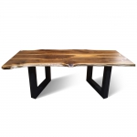 Обеденный стол с красивой столешницей из натурального массива, с природным краем и подчеркнутой структурой дерева. Оригинальная форма металлического подстолья, цвет которого вы можеты выбрать сами, подчеркнет ваш интерьер в эко- стиле или стиле лофт.