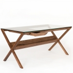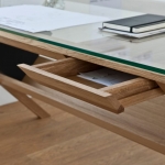 Дизайнерский рабочий стол для целеустремлённых людей, которые ценят лёгкость интерьера, а также минималистичные решения с использованием натуральных материалов. Модель изготовлена из натурального массива ясеня либо дуба и закалённого стекла. Выдвижной ящик на доводчиках от австрийского производителя Blum. Благодаря своей лёгкости подходит любому интерьеру.