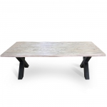 Массивный стол из натурального дуба или ясеня, с натуральным природным краем и подчеркнутой структурой дерева. Прекрасно подойдет для большой семьи или компании друзей. Красивое сочетание металла и благородного дерева для столовой или гостиной в стиле Лофт.