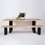 Современный обеденный стол в индустриальном стиле изготовлен из массива натурального дерева, дуба или ясеня, и сплошными черными стальными ножками, покрытыми порошковой краской. Идеально впишется в интерьер в стиле Лофт или Скандинавский. Вневременная дизайнерская вещь для любой столовой или кухни.